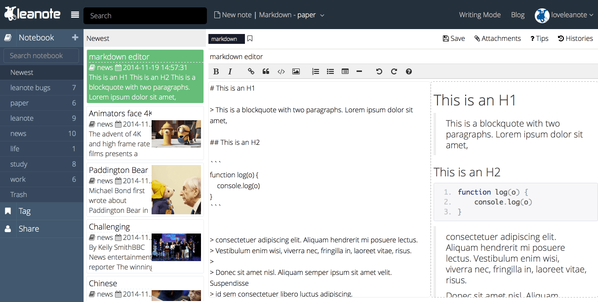 知识管理, 博客, 分享, 协作... 尽在Leanote
